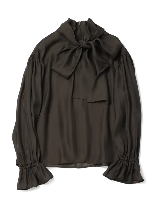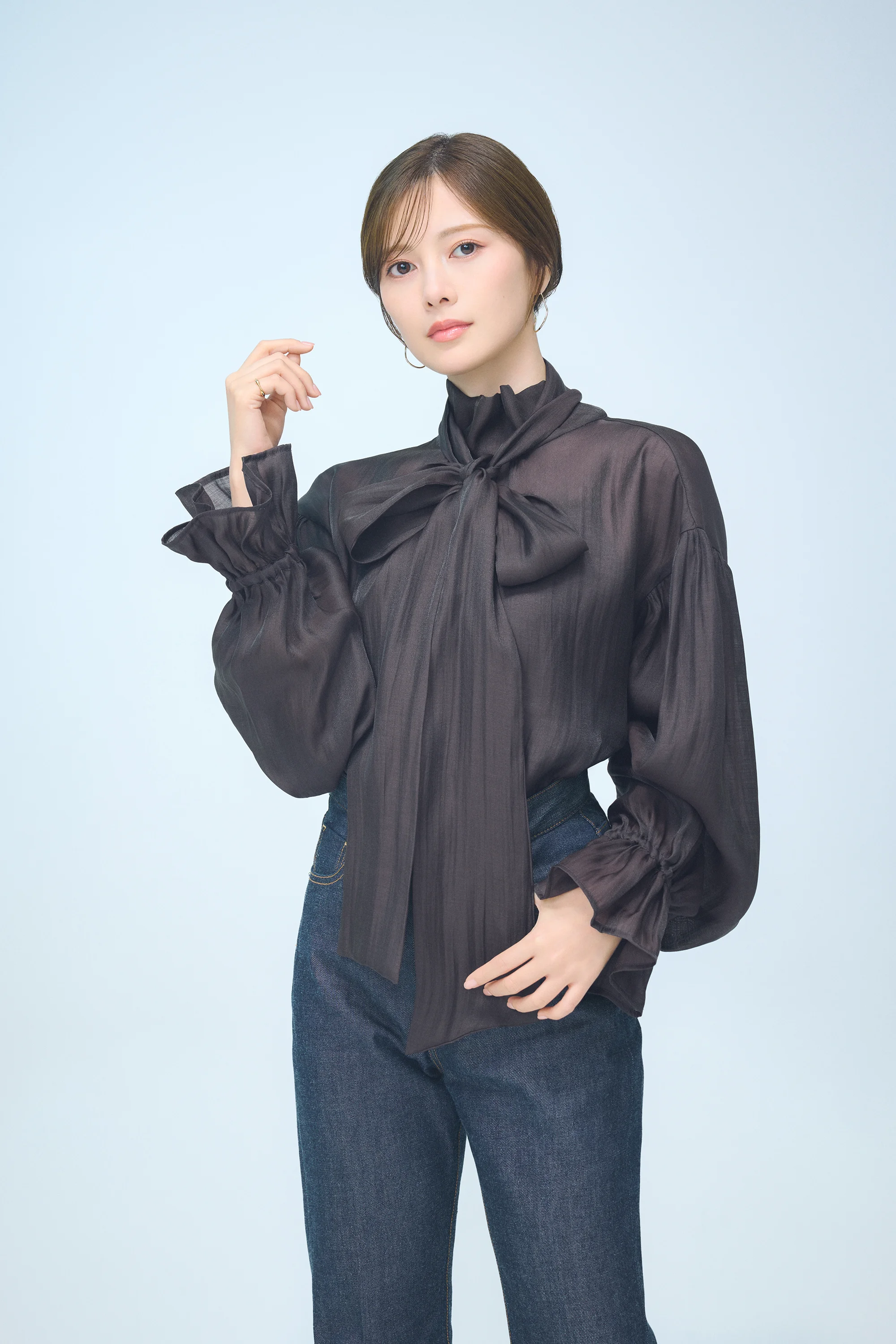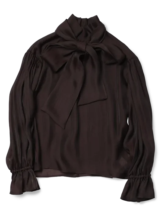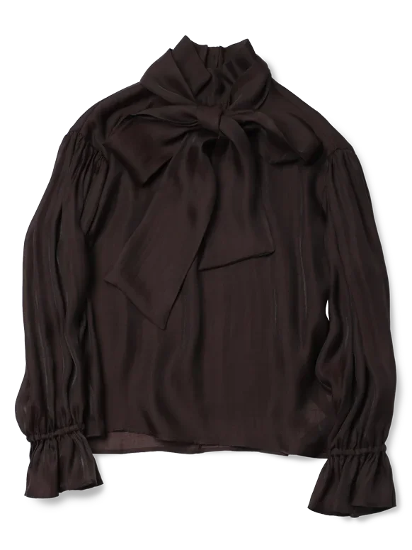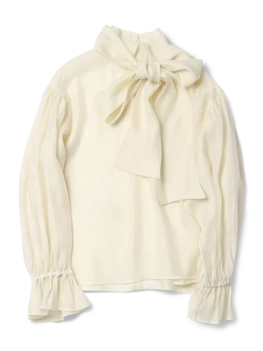 取り外し可能なボウタイやスタンドカラーなど細部にこだわり、レイヤードコーデを格上げするブラウス。
