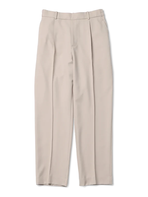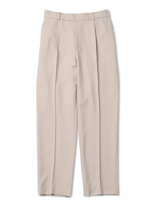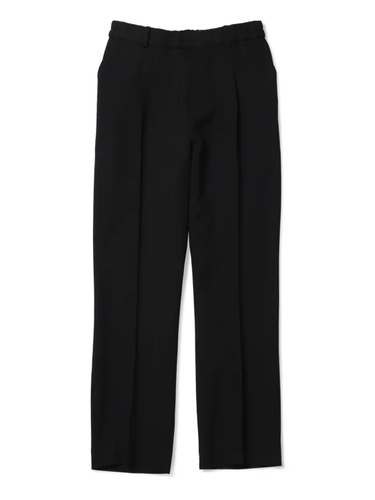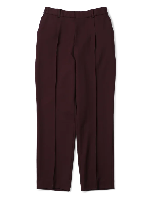 センターのピンタックで美脚を叶える、すっきりシルエットのテーパードパンツ。バックウエストゴムとファスナーなし仕様で、リラックス感のある履き心地も兼備。見た目も素材もこだわった名品パンツは、デイリー使いしたくなること間違いなし。