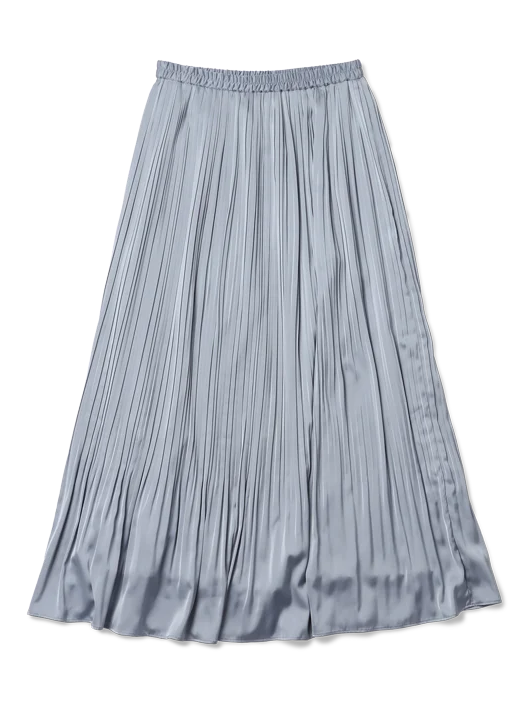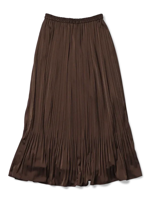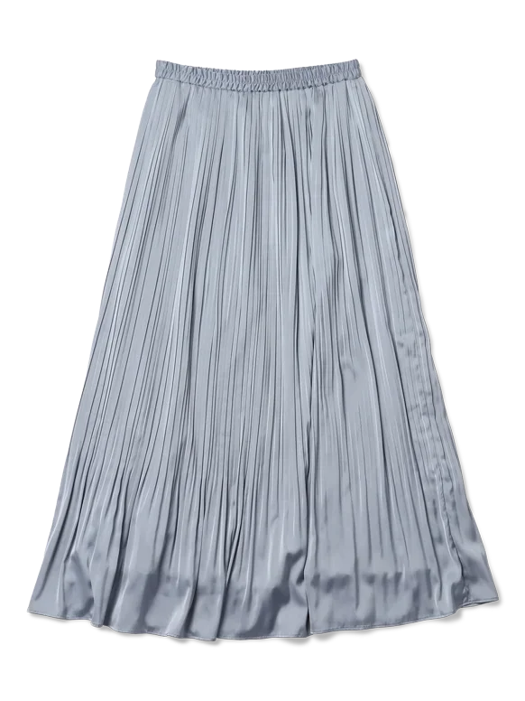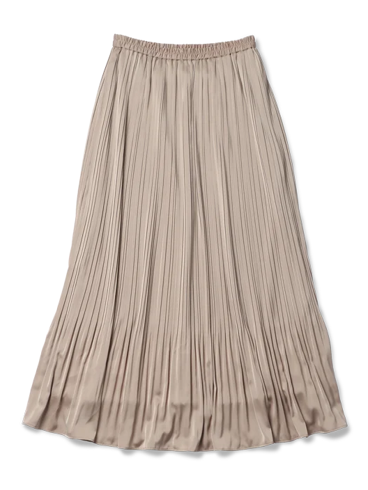 上品な光沢感でシーンレスに着やすいサテンプリーツスカート。落ち感のある素材とランダムプリーツが、甘くなりすぎない大人な抜け感を演出。ウエストゴムで快適な履き心地も兼備。綺麗め派さんにもカジュアル派さんにもおすすめの一枚。