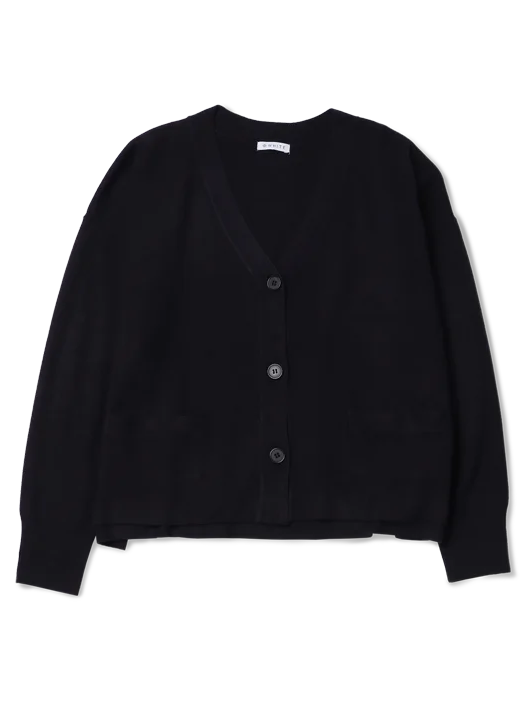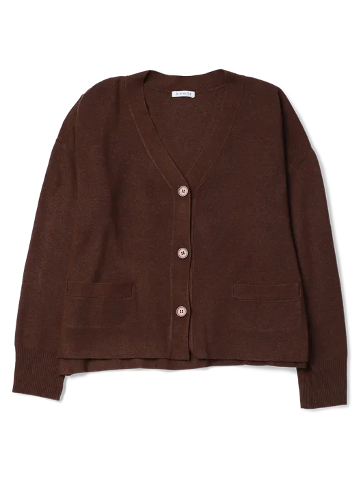 ラフになりすぎない絶妙なサイズ感。身体のラインを拾いにくい安心のカーディガン。