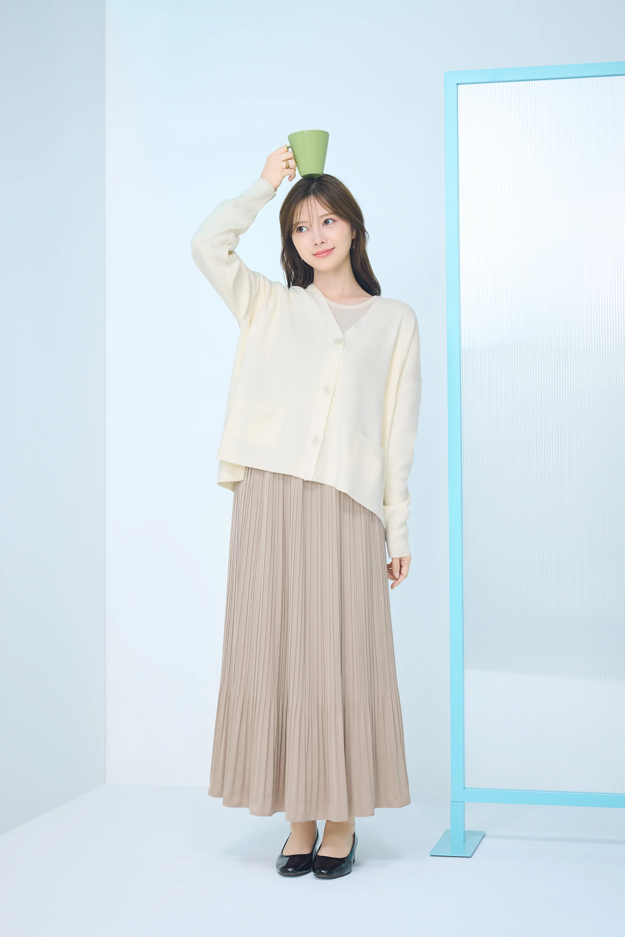 どんなトップスの上からも羽織れてスタイリングが決まる、ボトム選びも困らない万能カーデ。