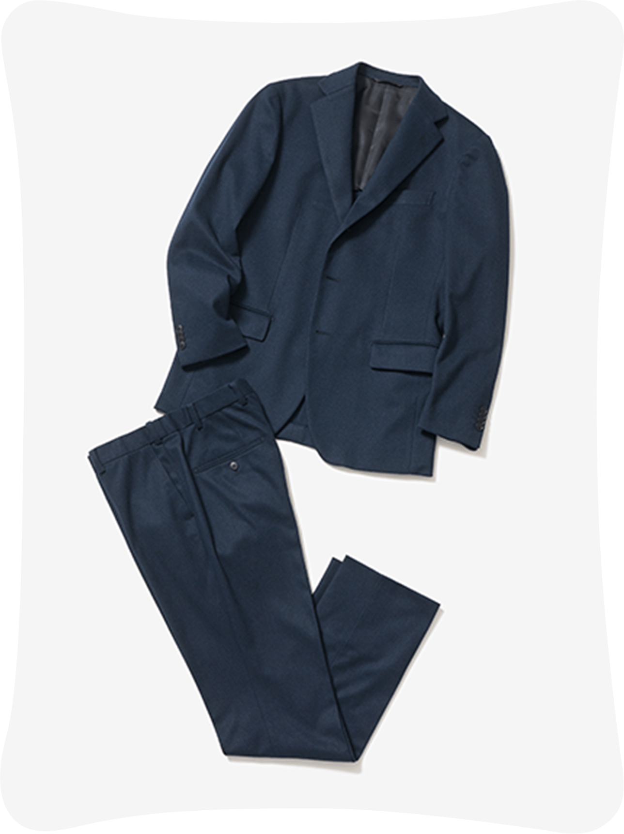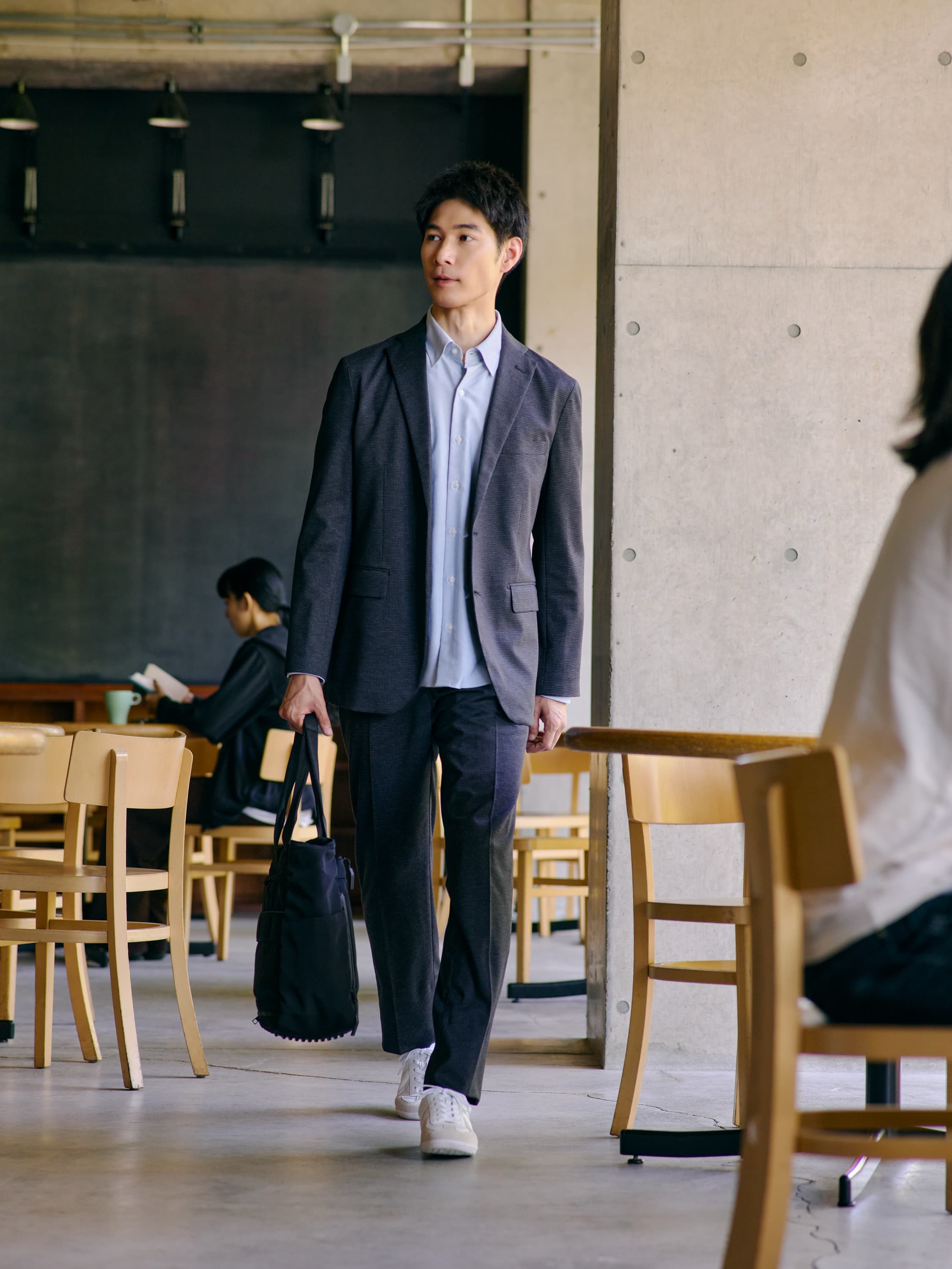 軽やかな仕立てでありながら、スーツ屋ならではの縫製で立体感のある美シルエットを実現。もちろん、ウォッシャブル、防シワなど実用面も◎ セットアップはもちろん、単品でも使いやすい色柄や素材でご用意。