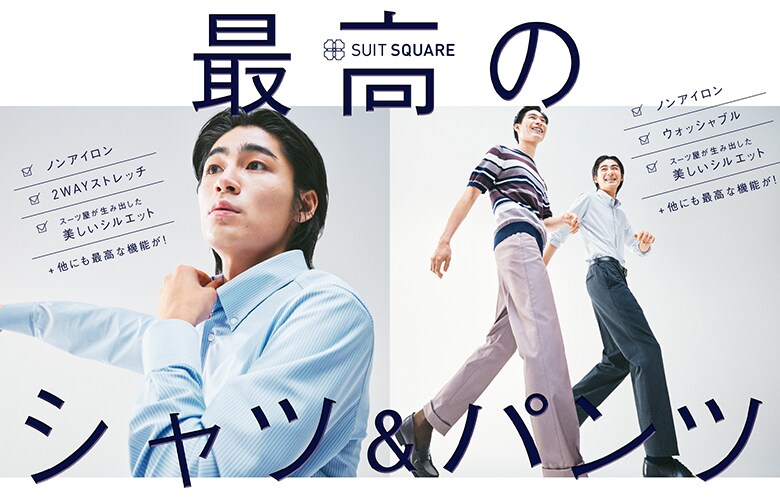 夏のビジネスで重宝間違いなしの、ポロシャツ・パンツ・Tシャツ・スーツをご用意しました。
