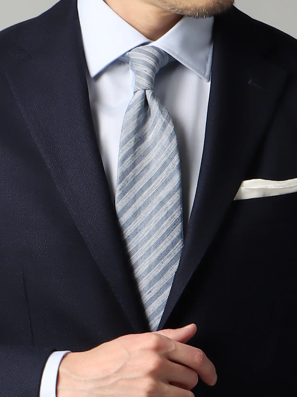 スペインの老舗ブランド『andreu.barcelona(アンドリュー・バルセロナ)』。“繊細”かつ“陽気で明るい”エッセンスと独創的な色使いが魅力です。リネンとシルクをブレンドした、軽やかでナチュラルな表情のネクタイ。ネップ感のある織柄の生地にホワイトの細いストライプを走らせました。藍色のようなネイビーで、いつもとは異なる味わいに。ギフト プレゼント お祝い クリスマス 誕生日 父の日 バレンタインデー