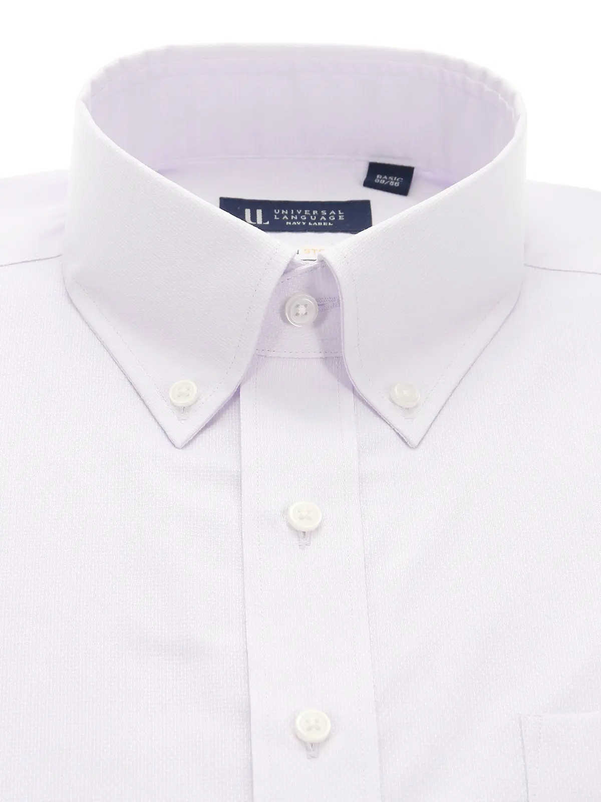 アイロン掛け不要で、一日中きれいに着られる人気シリーズです。“洗濯後、干すだけで美しい仕上がり”なのはもちろん、形態安定加工シャツに多いパリッとした硬い手触りは一切皆無です。さらに、“着用時の型崩れはほとんどなし”だから、ジャケットを脱いでも一日中忙しく働いてもスマート◎ 柔和な色合いが品の良さを感じさせる、パープルカラーのシャツ。上品な織柄のため、好印象間違いなしです。ボタンダウンカラーならノーネクタイでも立体感のある襟元が実現します。