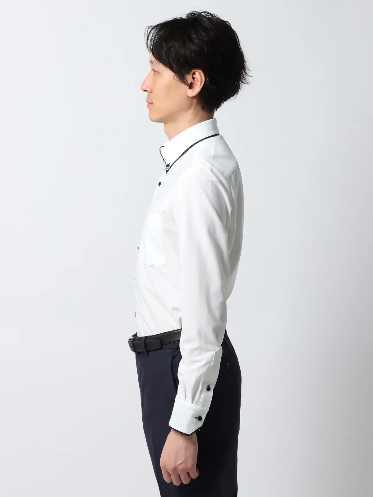 【襟】ボタンダウン【袖】長袖/カフリンクス使用可・袖口調節可