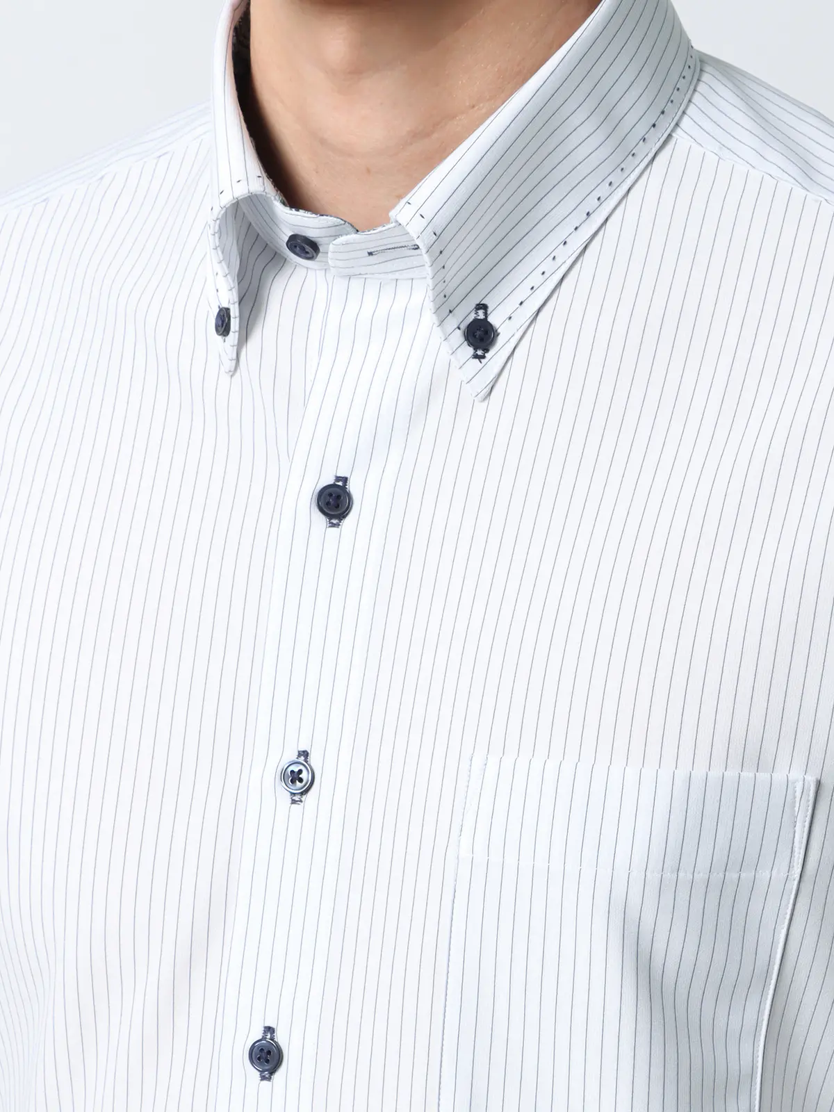 【襟】ボタンダウン【袖】長袖/カフリンクス使用可・袖口調節可