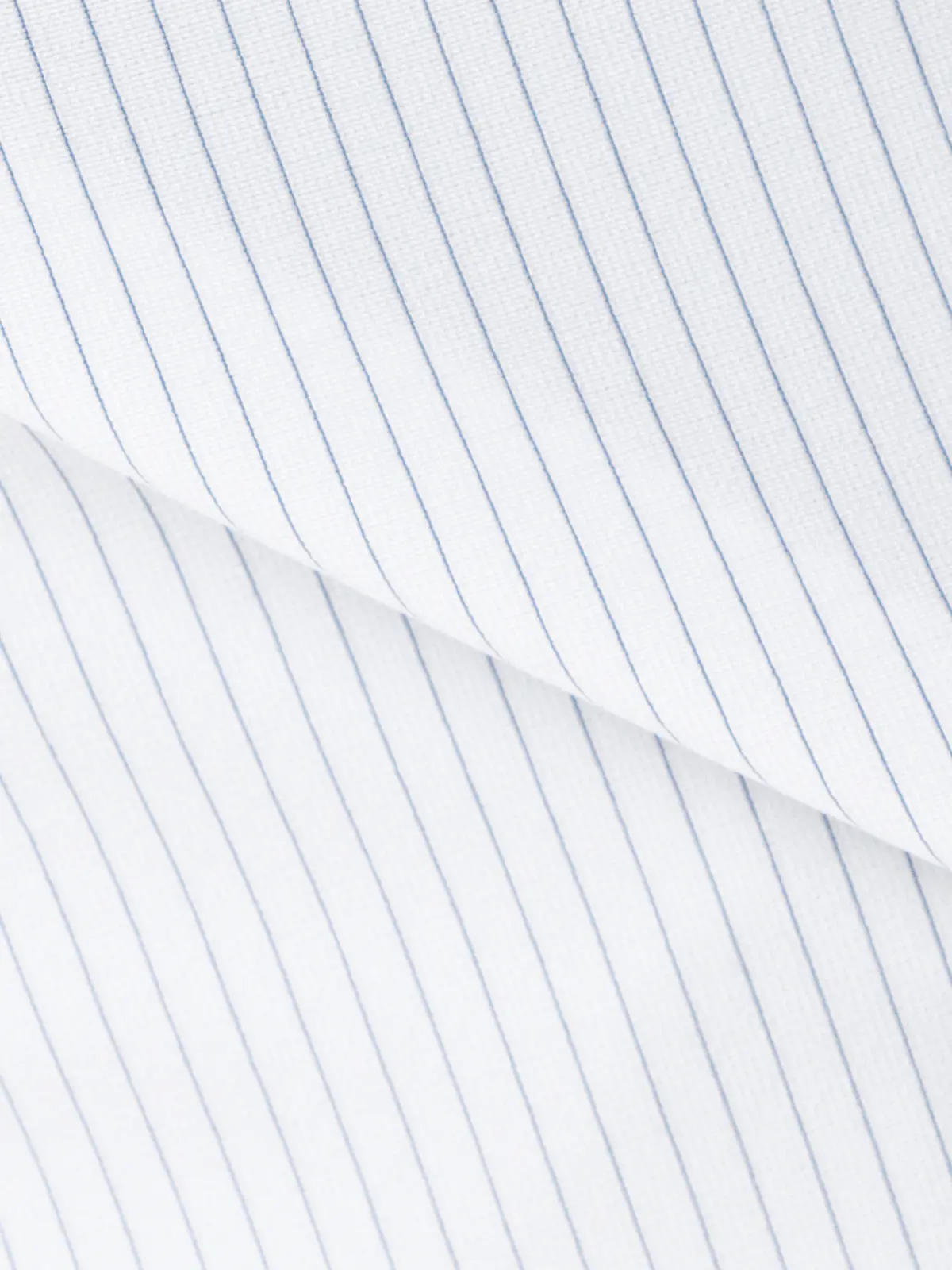 フィット感のあるシャープなシルエット。2本のダーツでウエストを絞り込み、背中生地のもたつきを解消しています。タイドアップはもちろん、ノーネクタイでも襟の立体感をキレイにキープ。こだわりのボタン位置で首元をすっきり見せます。