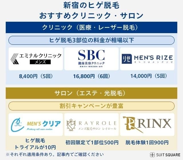 この記事では、新宿でおすすめのヒゲ脱毛クリニック・サロンをご紹介しました。