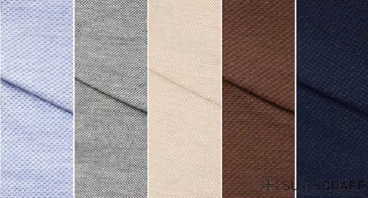 スラックスは主にウール、コットン素材がおすすめです。特にポリエステルやリネン(麻)がブレンドされている生地は速乾性が高くドライな肌触りでおすすめです。