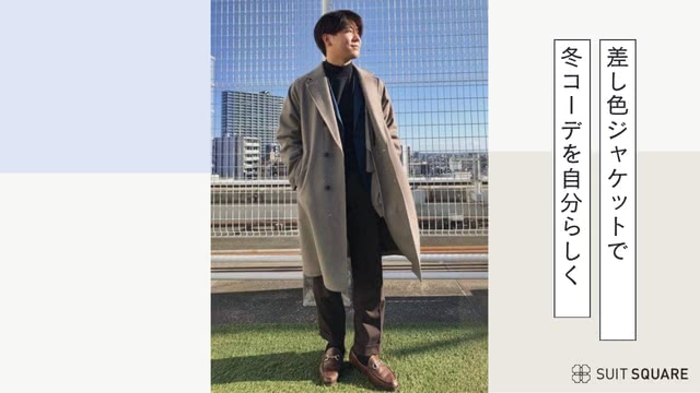 冬は重たく見えやすいため落ち着いた色味(ネイビー・グレー・ブラック)と、上質で適度な厚みのある素材を選ぶと、清潔感ときちんと感が自然に整います。インナーが重ね着になる季節でも、肩幅やシルエットが崩れないフィット感を意識すると、通勤コーデでも好印象に仕上がります。