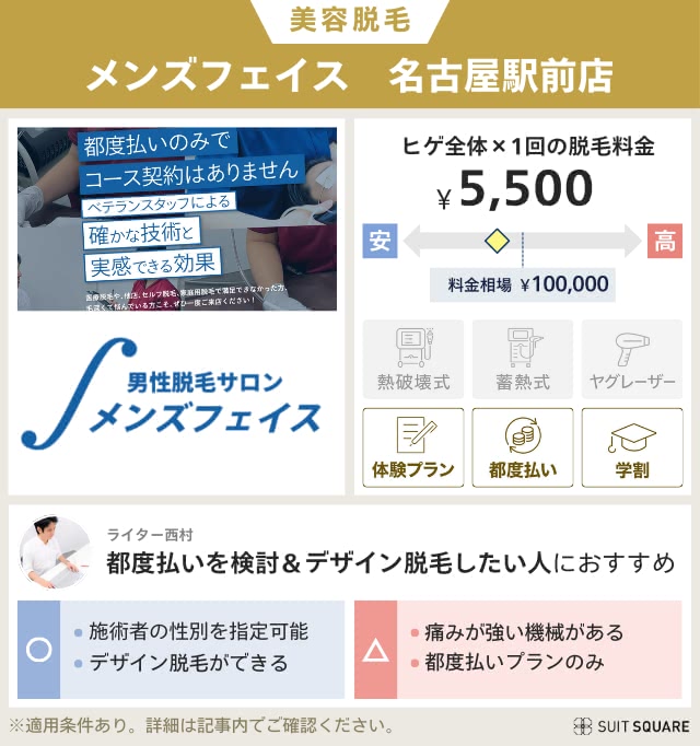 メンズクリア 名古屋駅前店・栄店 ![]() 評価:4.50★★★★☆ |