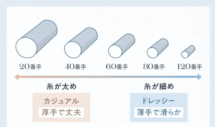 A. 生地の細さを表す「番手」によって見た目の「高級感」は変わります。