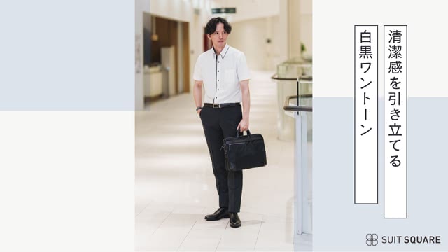 ④白の半袖ワイシャツ×黒のスラックス
