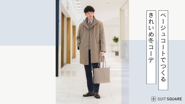 ③ライトベージュのコート×サックスブルーのワイシャツ