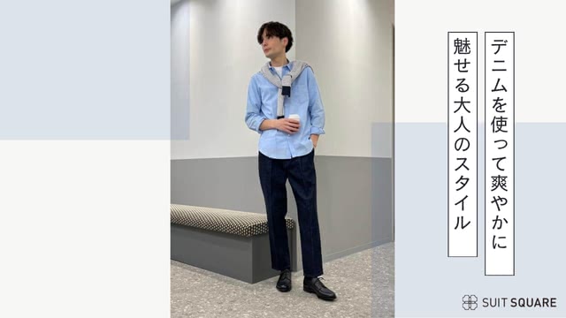 ④サックスブルーのワイシャツ×上品なデニム