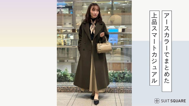 - 秋冬はウールジャケットやニットを取り入れて上品にまとめる。