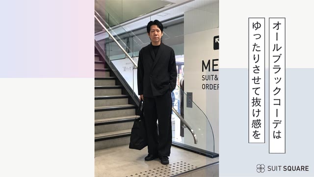 おすすめのダブルショールカラージャケットセットアップ。伸縮性のある肉厚素材で着心地がよく、ストレスフリーに過ごせます。重厚感が出やすいオールブラックコーデも、ゆったりとしたパンツがほどよい抜け感をプラスします。