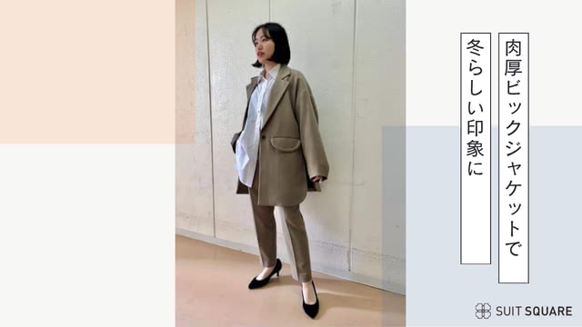 おすすめのビッグシルエットジャケット。程よい肉厚感のジャケットはコーデに冬らしい印象をプラスしてくれます。アウターとして可愛く着られるのも魅力です。