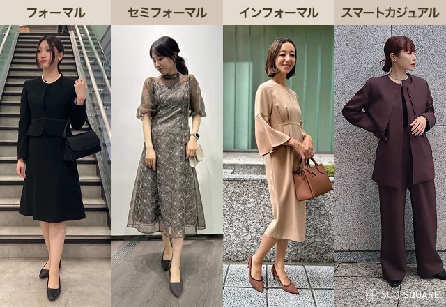 結婚式や式典などフォーマルな場で求められる服装から、日常に近いカジュアルな装いまで、段階的に分けられています。